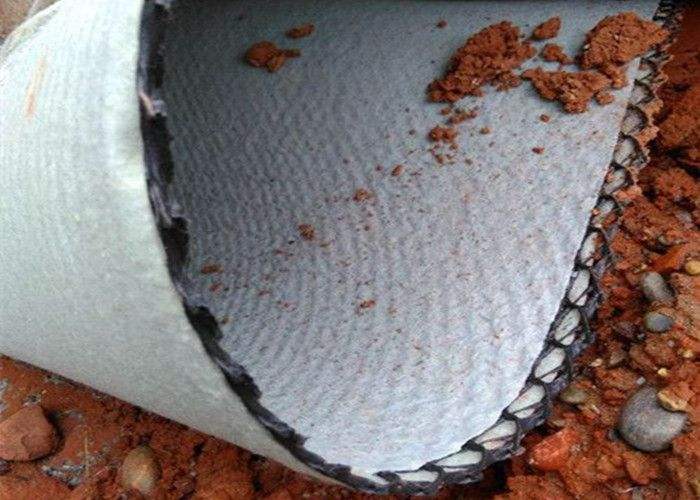 (1)鋪設。土工復合材料必須沿斜坡向下鋪設,注意減少褶皺。鋪設過程中必須保證30cm的搭接寬度,鋪設平整,適當裁剪以適應地形,注意確保障礙物和土工材料之間沒有縫隙,防止小土粒進入土工網芯。