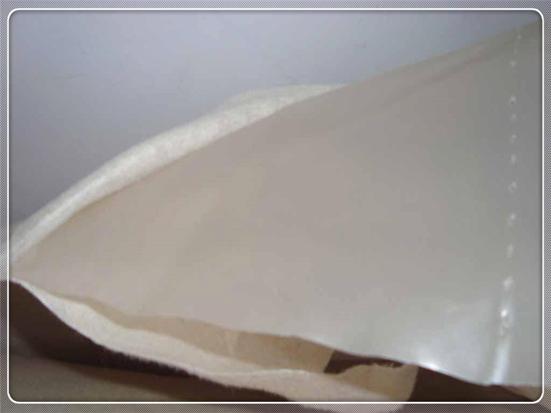 復合土工膜需要進行焊接,其焊接控制參數以及焊接工藝都必須根據試驗結果確定,先采用封口機將下層的土工布縫合,然后再采用熱楔焊機對夾膜進行焊接,焊接的溫度控制在300~350℃,焊機的行走速度控制在0.8~1.0m/min。焊接的溫度過高會損壞復合土工膜,焊機的溫度過低則不能將土工膜進行很好的結合,這都導致焊縫質量不合格;焊機的行走速度過快、過慢也會造成土工膜焊接不符合要求。對于夾膜焊縫,通常采用充氣法進行檢查,焊縫滿足要求后用封口機將上層土工布縫合。