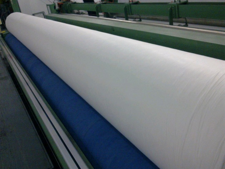 土工布是目前應(yīng)用最廣泛的非織造土工布之一。纖維經(jīng)過開松混合、梳理(或氣流)成網(wǎng)、鋪網(wǎng)、牽伸及針刺固結(jié)最后形成成品,針刺形成的纏結(jié)強度足以滿足鋪放時的抗張應(yīng)力,不會造成撕破、頂破。由于其厚度較大、結(jié)構(gòu)蓬松,且纖維通道呈三維結(jié)構(gòu),過濾效率高,排水性能好。其滲透系數(shù)達(dá)10-1~10-2,與沙粒濾料的滲透系數(shù)相當(dāng),但鋪起來更方便,價格也不貴,因此用作反濾和排水最為合適。還具有一定增強和隔離功能,也可以和其它土工合成材料復(fù)合,具防護等多種功能。由于非織造土工布具反濾和排水的特點,因此在水力學(xué)性能方面要特別予以重視,一是有效孔徑;二是滲透系數(shù)。要利用非織造布多孔的性質(zhì),使孔隙分布有利于截留細(xì)小顆粒泥土又不致于淤堵,這必須結(jié)合工程的具體要求,予以滿足。
